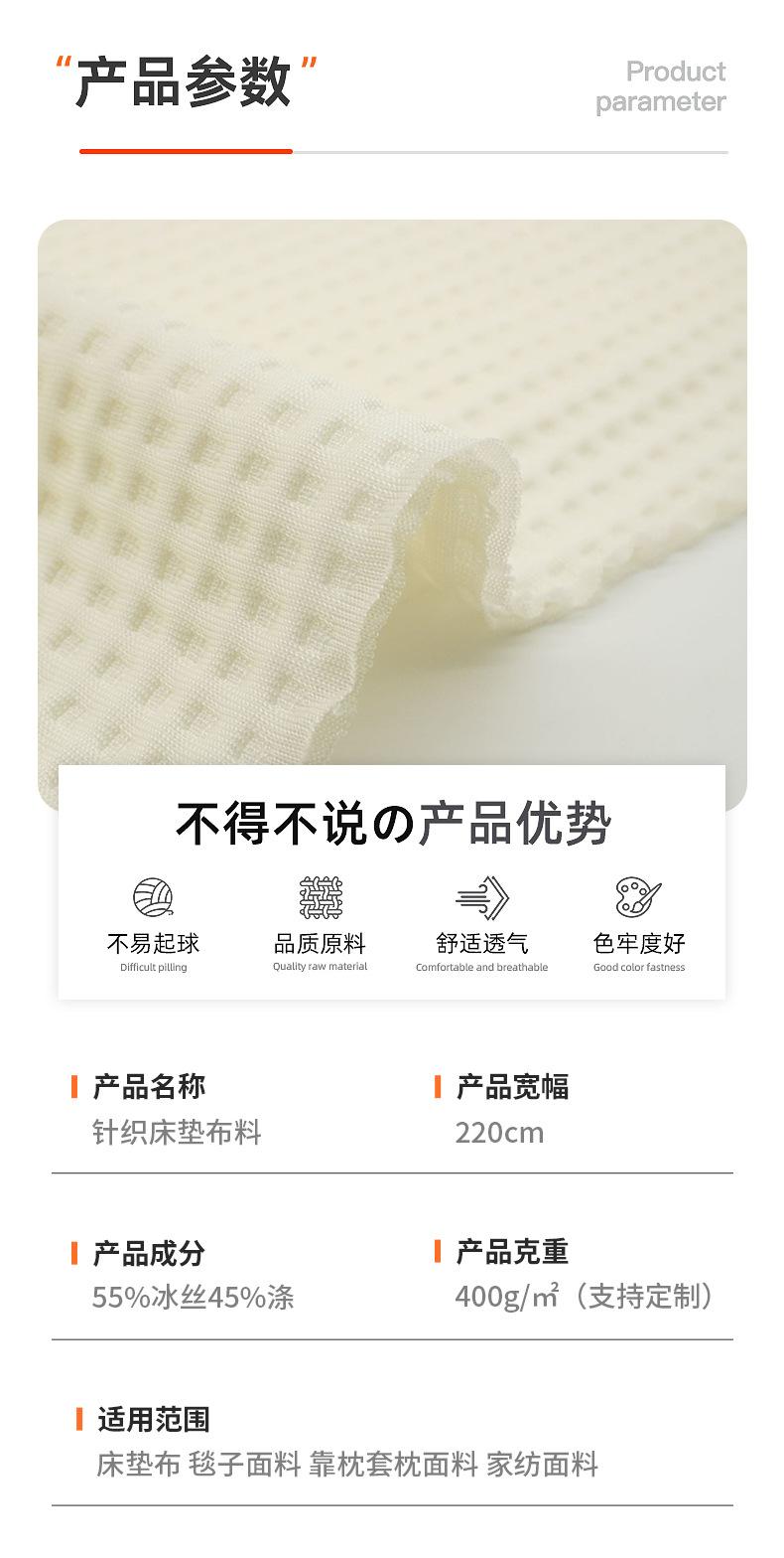厂家供应冰丝针织布中分子凉感冰豆豆凉席床垫布可水洗透气面料